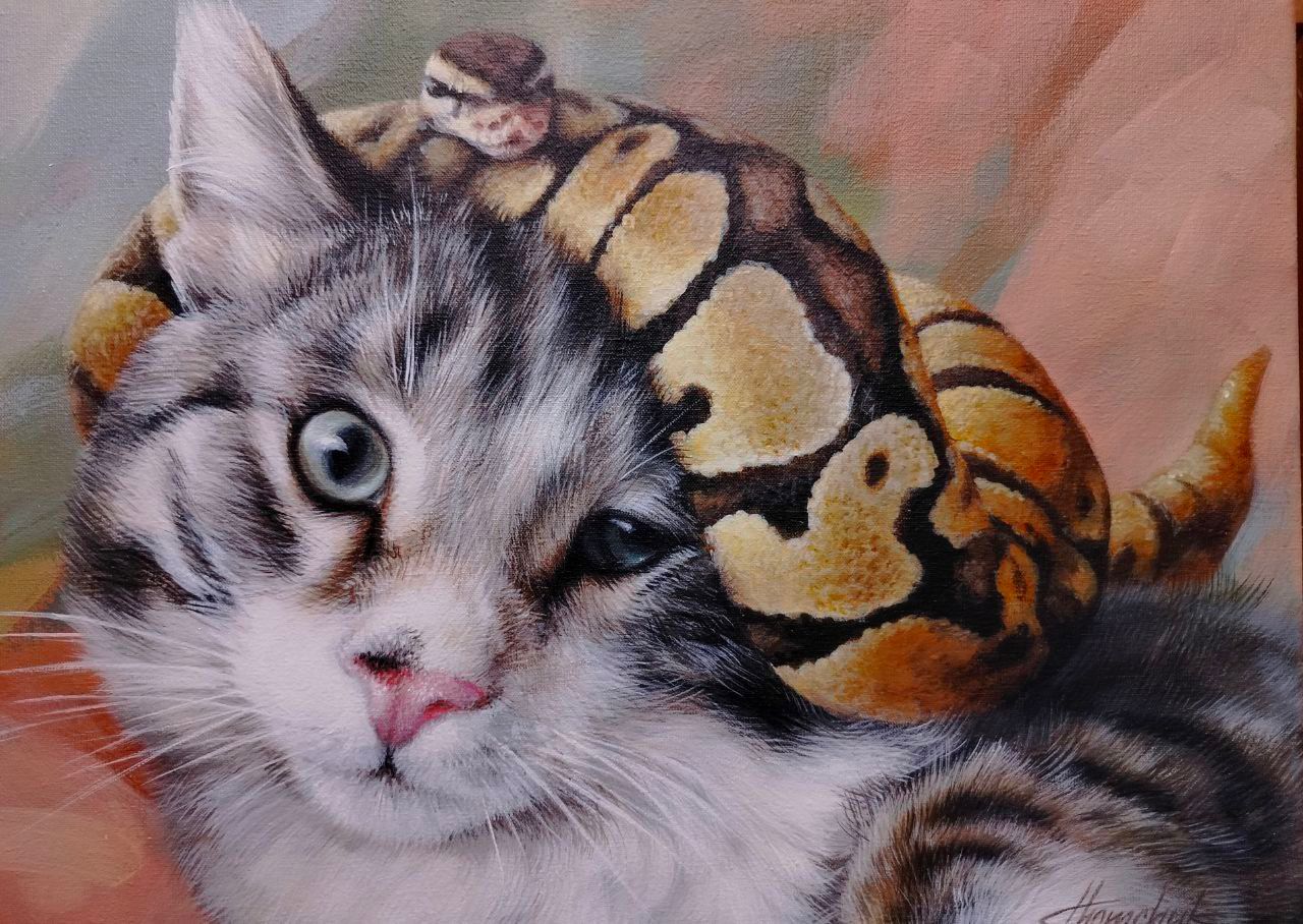 Ukrainian artist Anna Khomchyk has created a series of animalistic paintings “Different Together” dedicated to the coexistence and interaction of completely different creatures in different circumstances. The artist emphasizes that at a time when war is destroying civilization and taking lives of people and animals, it is important to remind us of the importance of finding a common language and joining forces to save our world! If even animals of different species, genera and classes, different in size, color, character, and habitat can find a common language, then can we, humans, not unite to confront the aggressors!